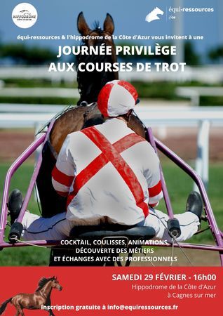 Cette journée aura lieu à l'Hippodrome de Cagnes sur mer le samedi 29 fevrier à partir de 16h00 et se terminera vers 21h00 par un cocktail.