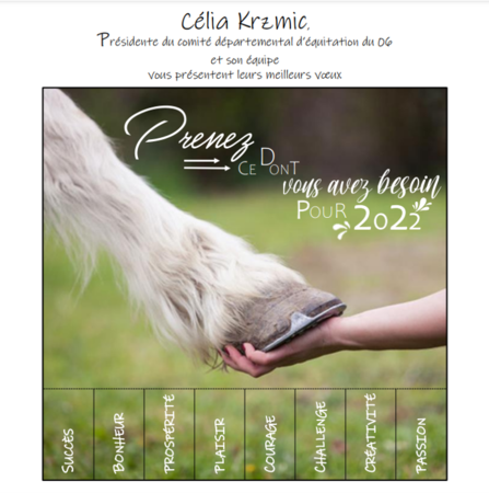 Toute l’équipe du Comité Départemental d’Equitation se joint à moi pour vous souhaiter d’excellentes fêtes et vous donne rendez-vous en 2020 !