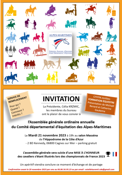L'assemblée général du Comité Départemental d'Équitation des Alpes-Maritimes se tiendra le